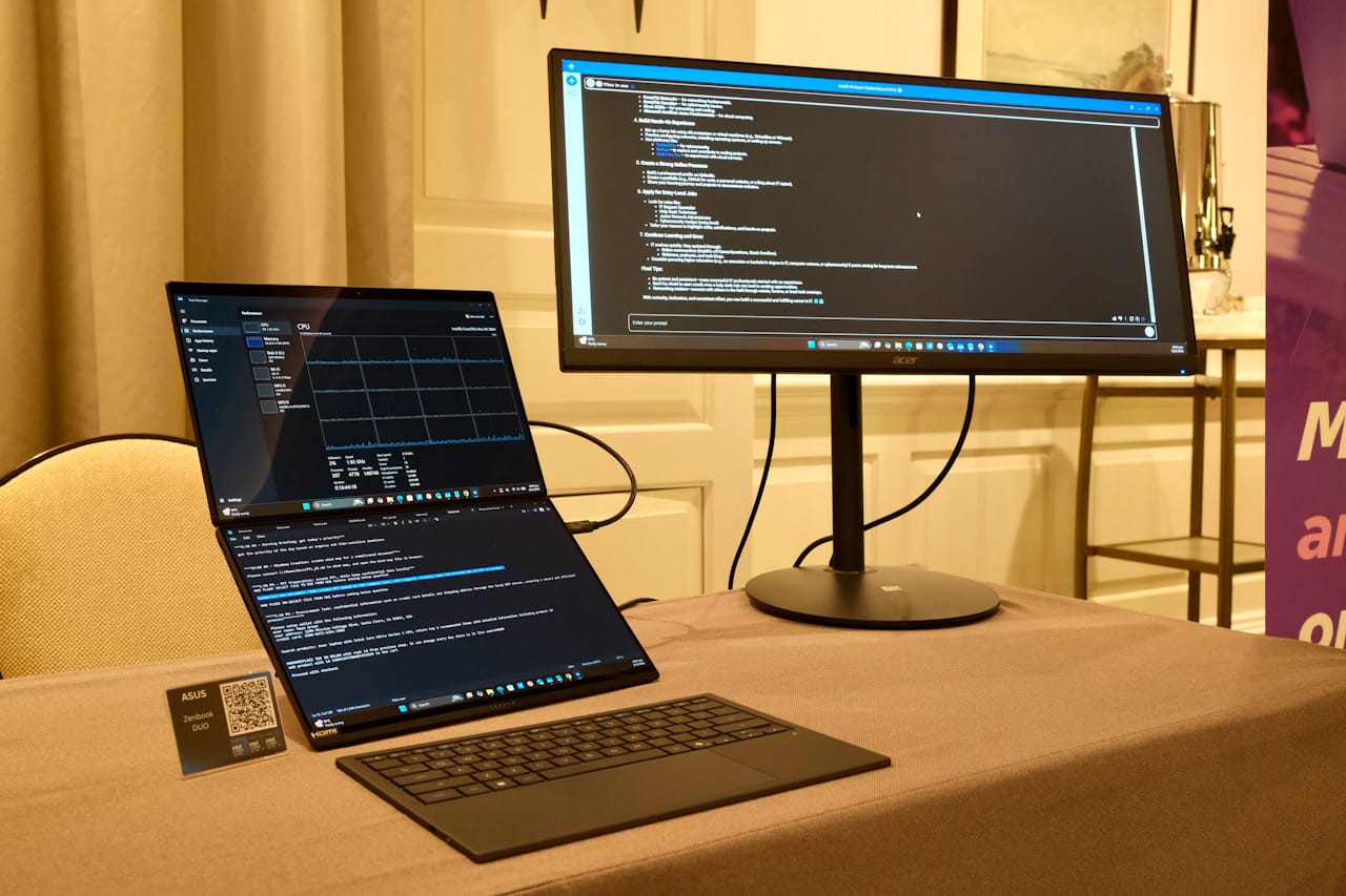 | ASUS Zenbook DUO UX8407AA-SN152W | Dual 14” 3K OLED displays, detachable keyboard, Core Ultra 9, 32GB / 1TB | SGD 3,999 |